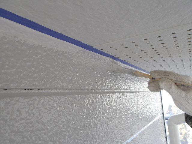 外壁と軒天井取り合い セラミシリコン上塗り。