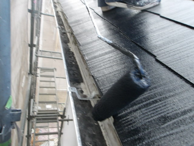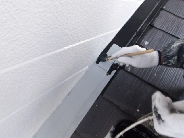 下屋根壁際ブリキ 水系カスタムシリコン中塗り。
