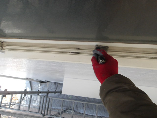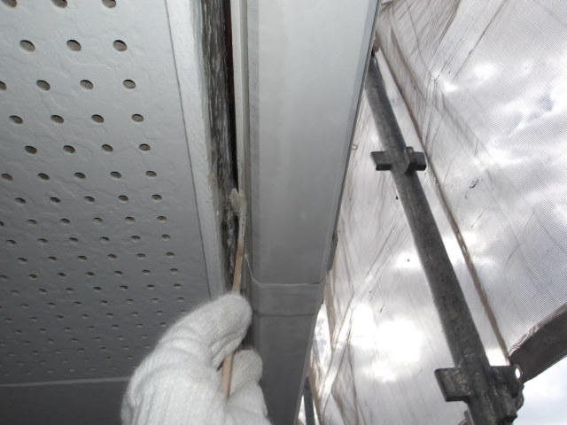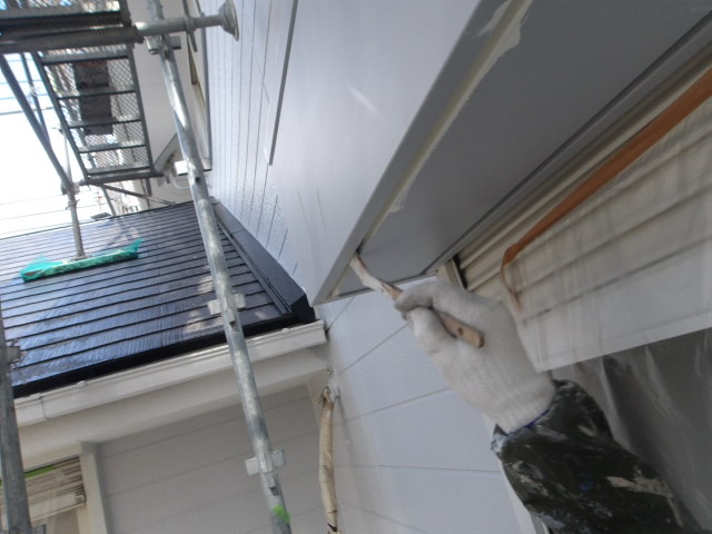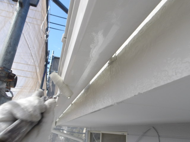 溶剤シリコン 破風板・軒雨樋下塗り。