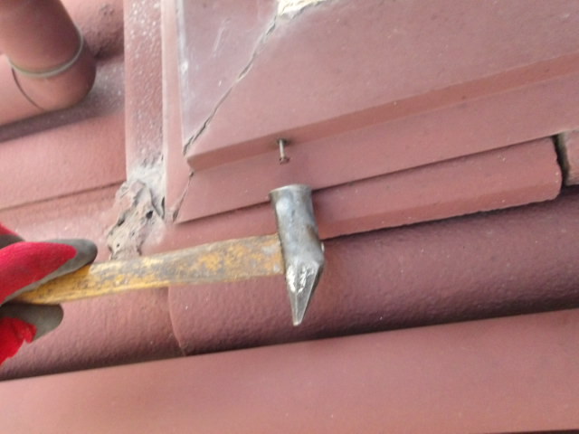屋根壁際ブリキ・袖ブリキ等抜けかけてる釘を打ち込み直し。