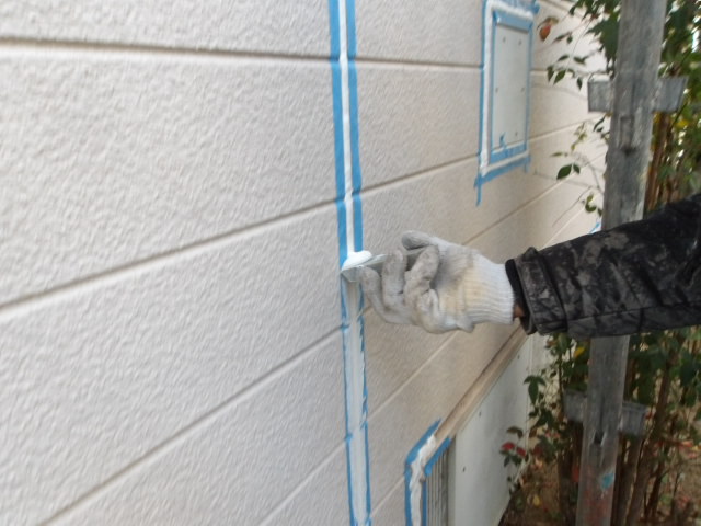 シーリング工事。サイディング目地打ち替え、サッシ周り他増し打ち。