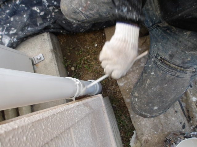 竪雨樋下塗り。