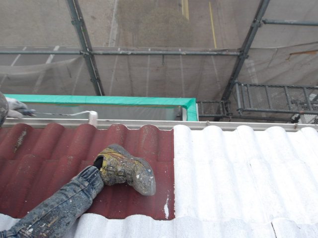 大屋根 クールタイトフッ素一部中塗り。